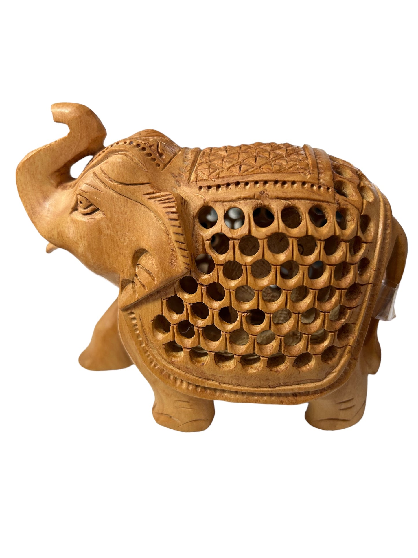 Handcarved in wood, is an amazing art, which brings the question ' how do they do it?' to mind. The lucky elephant is carved from a single piece of wood with no joints and has a cute baby elephant inside mama's belly. Approximate 3 inches high and 4 inches wide. Compare at $ 35.99